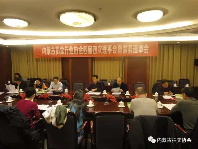 2017年1月12日,內(nèi)蒙古拍賣行業(yè)協(xié)會(huì)四屆四次理事會(huì)暨常務(wù)理事會(huì)在呼和浩特市華辰酒店召開(kāi),下午七時(shí),會(huì)議準(zhǔn)時(shí)召開(kāi),由內(nèi)蒙古拍賣行業(yè)協(xié)會(huì)副會(huì)長(zhǎng)兼秘書(shū)長(zhǎng)賈世軍主持會(huì)議。