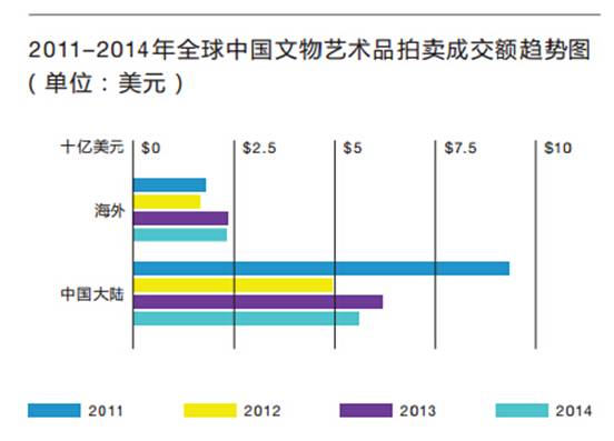2014年全球中國文物藝術(shù)品拍賣市場(chǎng)再度下行 成交率創(chuàng)五年來新低 ——北美取代歐洲,躍居海外中國文物藝術(shù)品拍賣第二大市場(chǎng),僅次于亞洲
