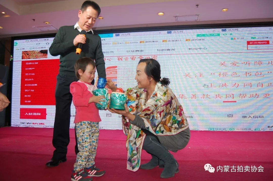 慈善拍賣會(huì)上所捐的37件拍品全部成交。最后所拍善款將為內(nèi)蒙古自治區(qū)100個(gè)聽(tīng)障兒童購(gòu)買(mǎi)“橙色書(shū)包”(橙色書(shū)包 是2016年3月3日由中國(guó)聽(tīng)力醫(yī)學(xué)發(fā)展基金會(huì)發(fā)起的公益項(xiàng)目,旨在為聽(tīng)障兒童提供一個(gè)交通安全"護(hù)身符)。